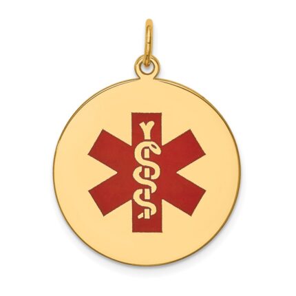 14k 24mm Heart-Shaped Red Enameled Medical Jewelry Pendant