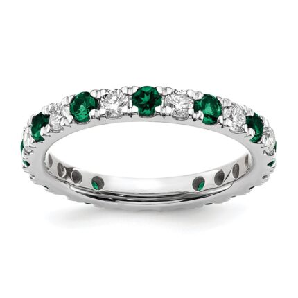 14k White Gold 1/2 carat Lab Grown Diamond VS/SI+ G+ and Lab Created Emerald Size 7.5 Eternity Band