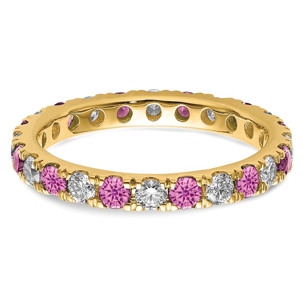 14k 3/4 carat Lab Grown Diamond VS/SI+ G+ and Lab Created Pink Sapphire Size 6.5 Eternity Band