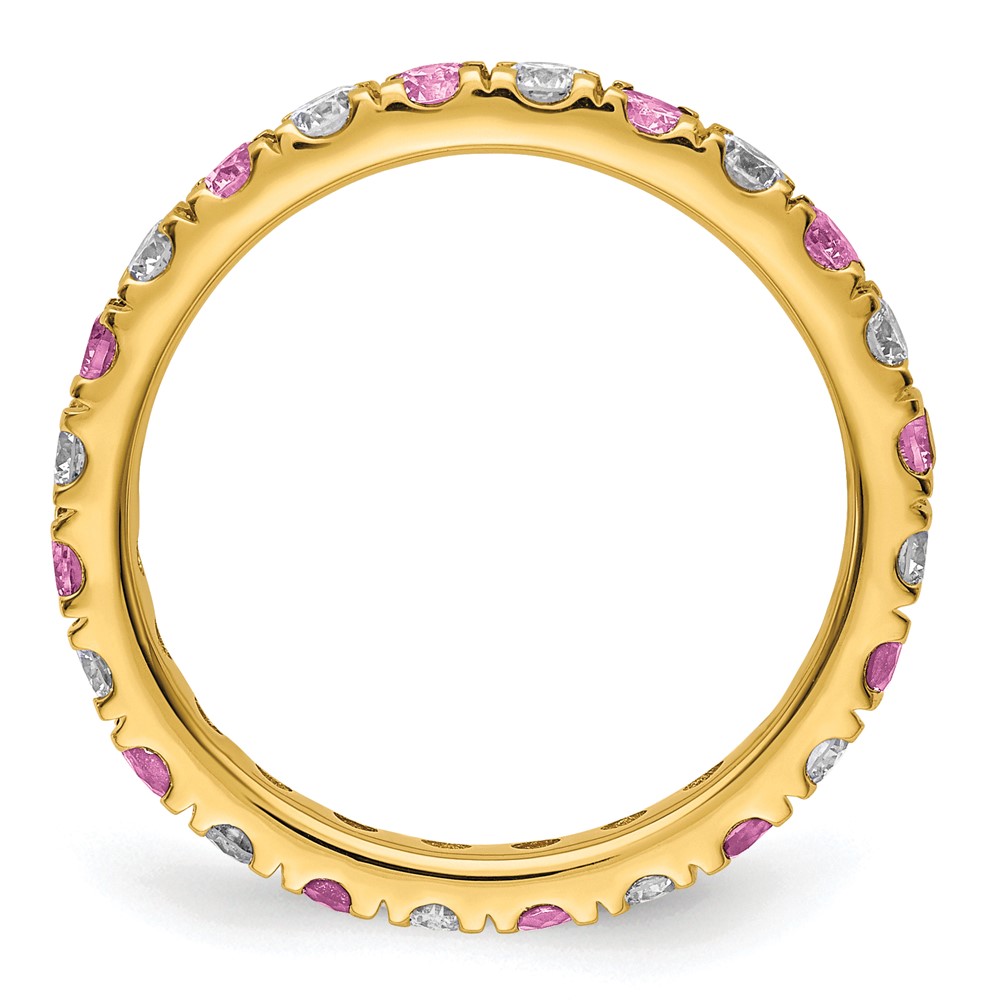 14k 3/4 carat Lab Grown Diamond VS/SI+ G+ and Lab Created Pink Sapphire Size 7 Eternity Band