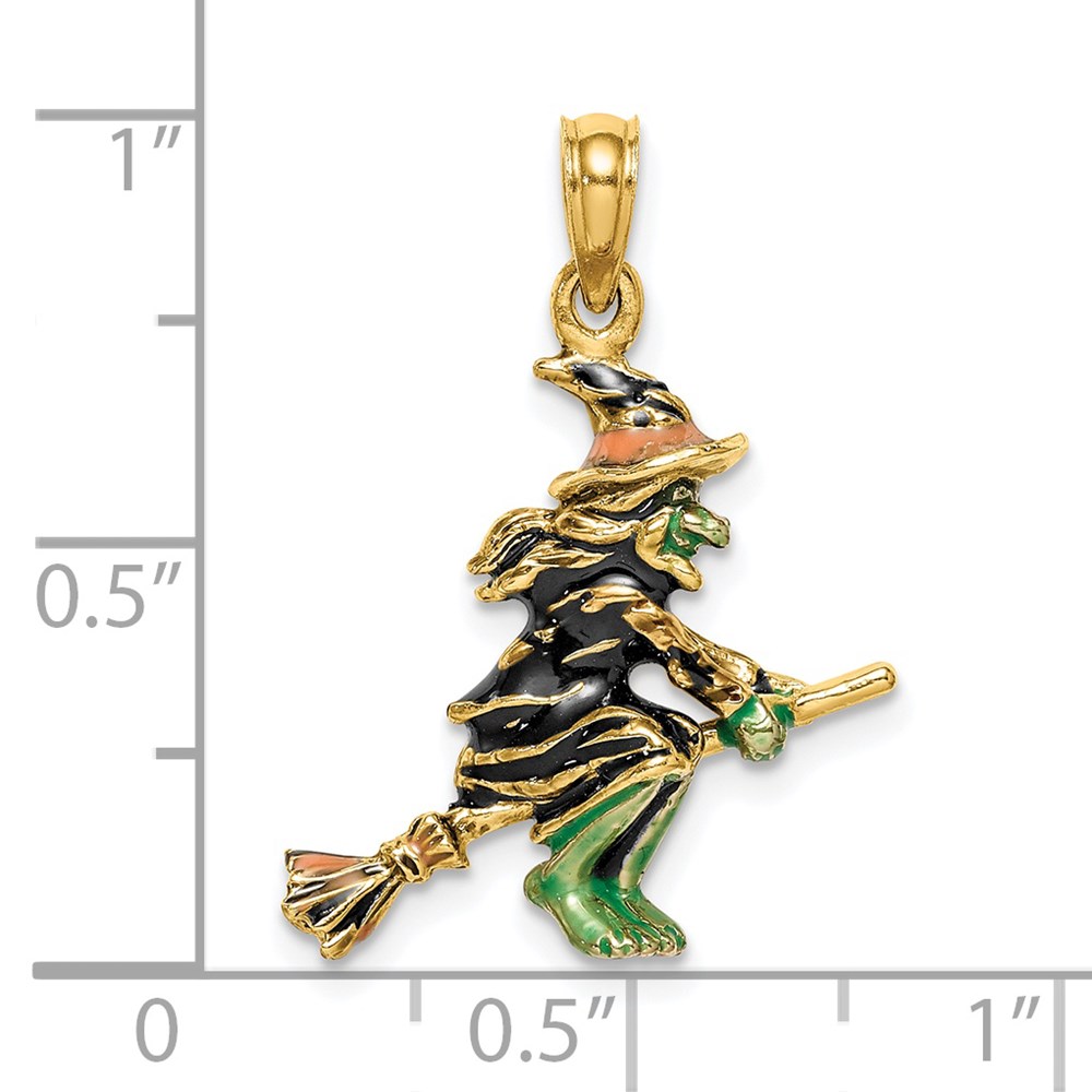 14K 3-D Enameled Witch with Broom Charm