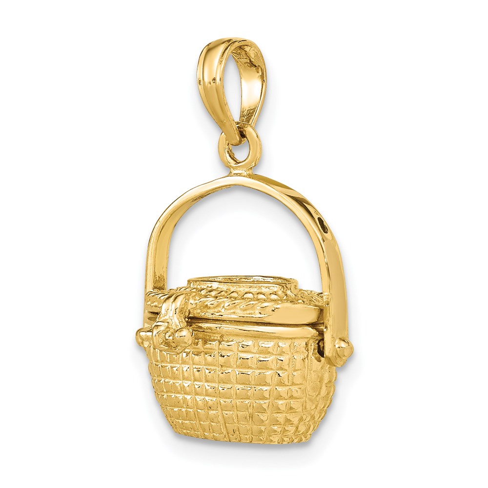 14K 3-D Nantucket Basket with Moveable Lid and Handle Charm