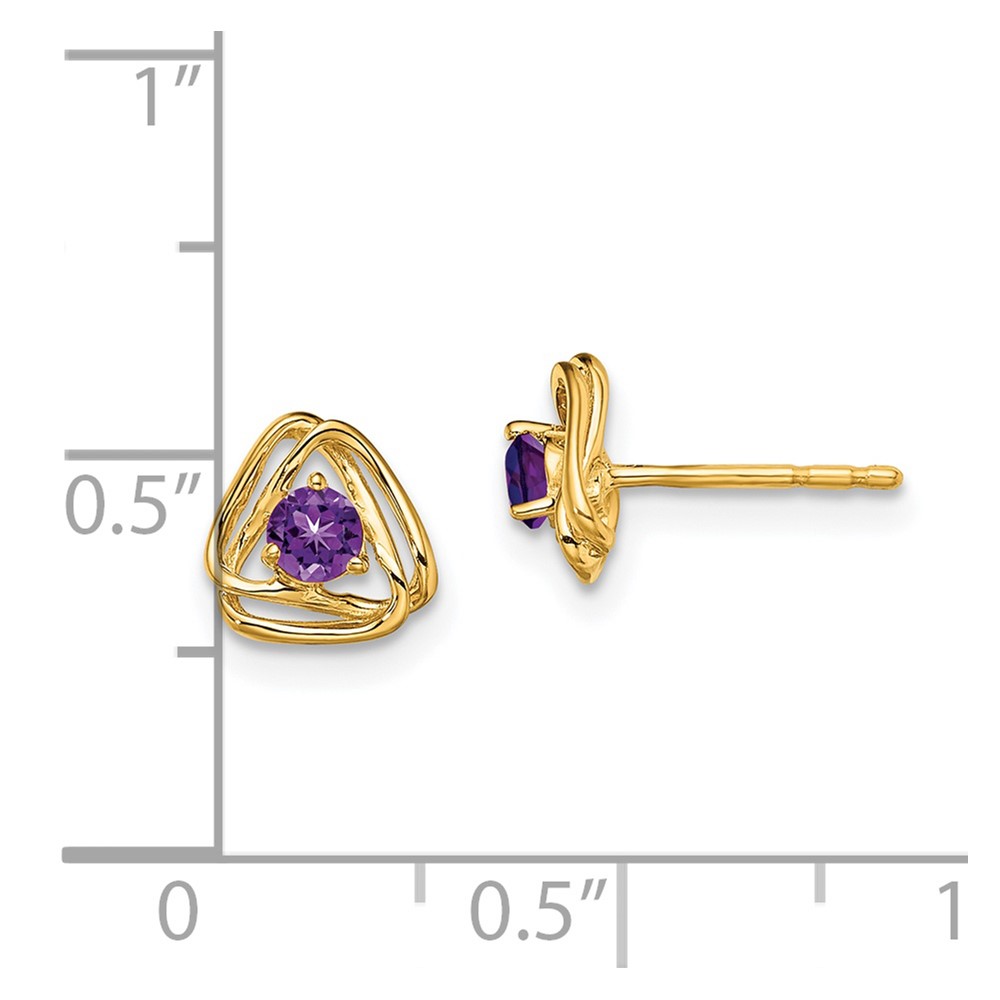 14k 3mm Round February/Amethyst Triangle Post Earrings