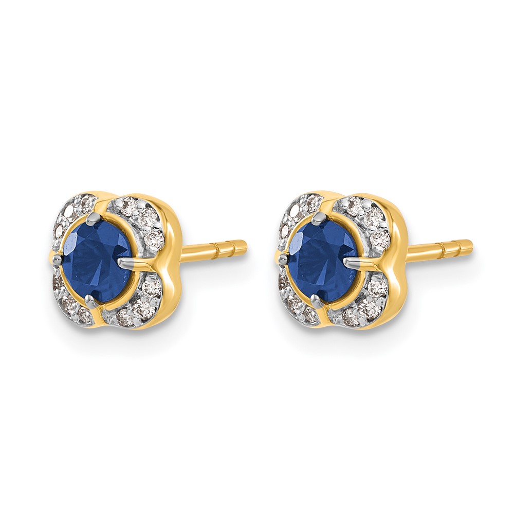 14k 5.2mm Round Sapphire and Diamond Fancy Square Post Earrings