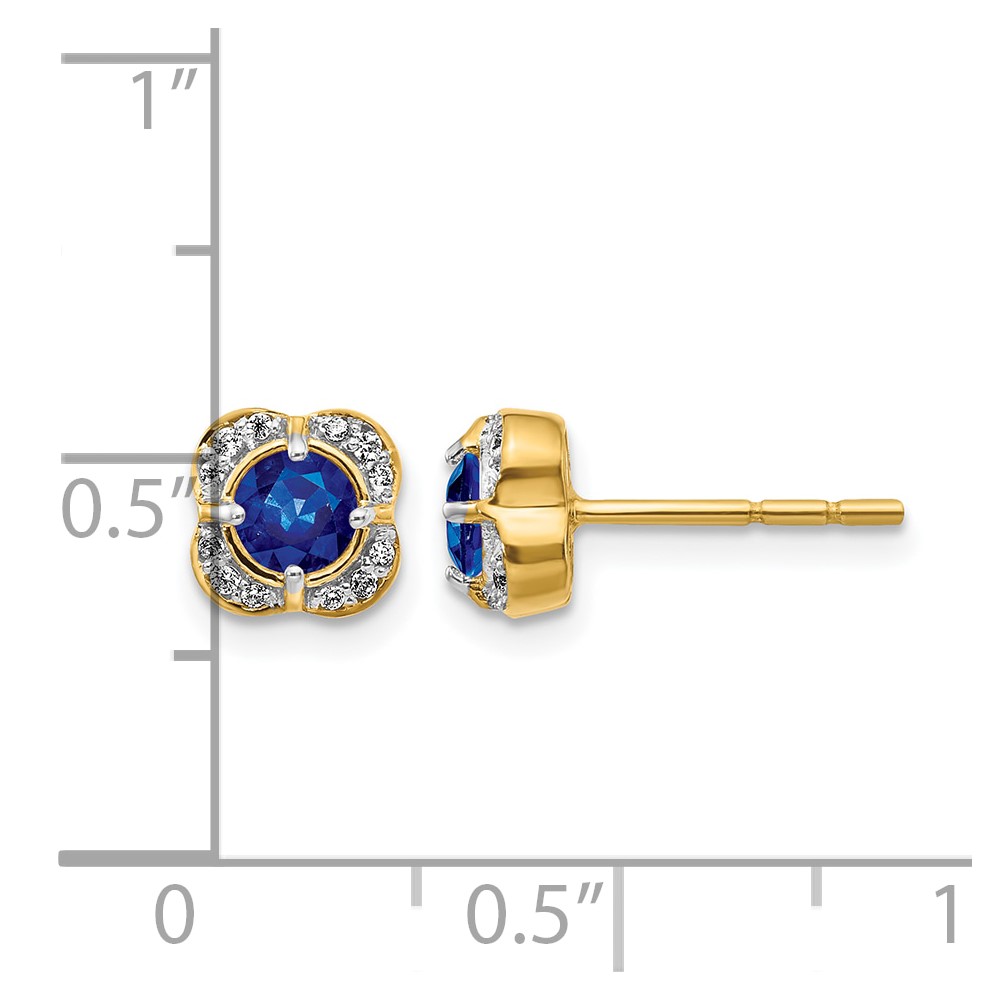 14k 4.1mm Round Sapphire and Diamond Fancy Square Post Earrings