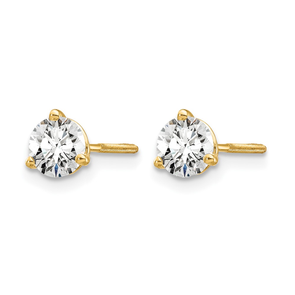 14k 5/8 carat Certified Lab Grown Diamond VS+ F+ Round Complete Three Prong Screwback Stud Earrings