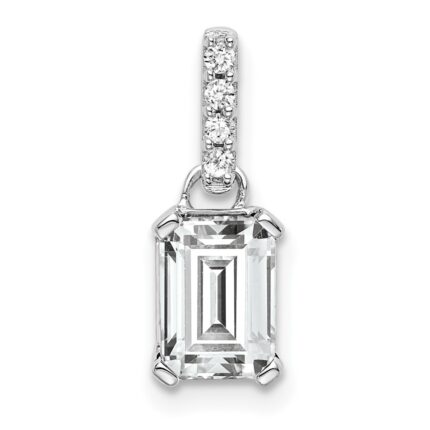 14k White Gold 7×5 Emerald-cut April/White Topaz and Diamond Pendant