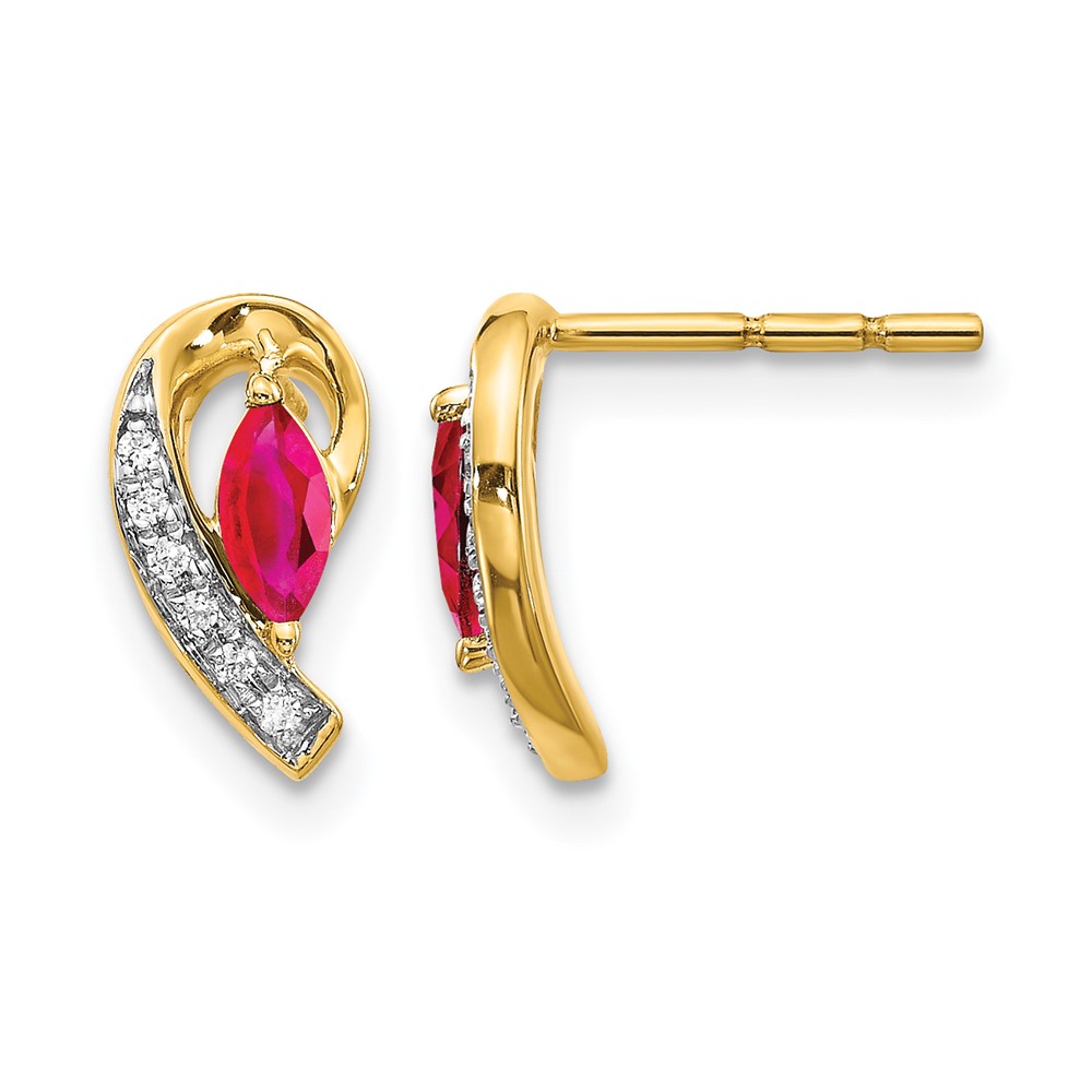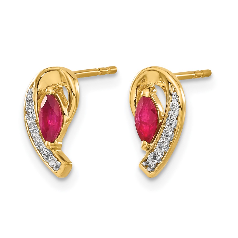 14k 5×2.5mm Marquise Ruby and Diamond Curved Post Earrings