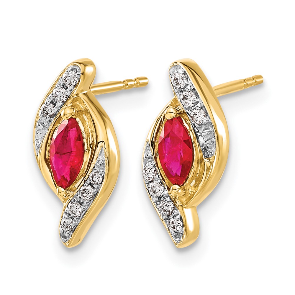 14k 5×2.5mm Marquise Ruby and Diamond Post Earrings