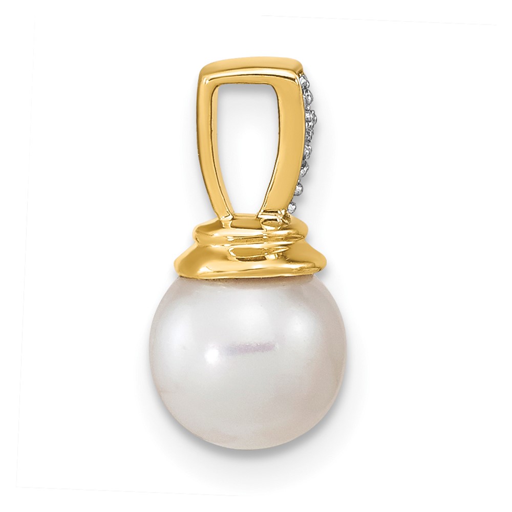 14k White Gold 8-9mm Round White Freshwater Cultured Pearl and Diamond Chain Slide