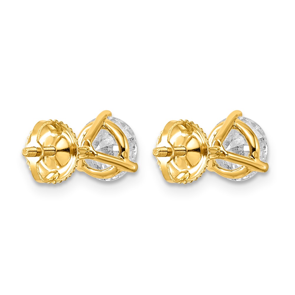 14k 6 carat Certified Lab Grown Diamond VS/SI+ G+ Round Complete Three Prong Screwback Stud Earrings