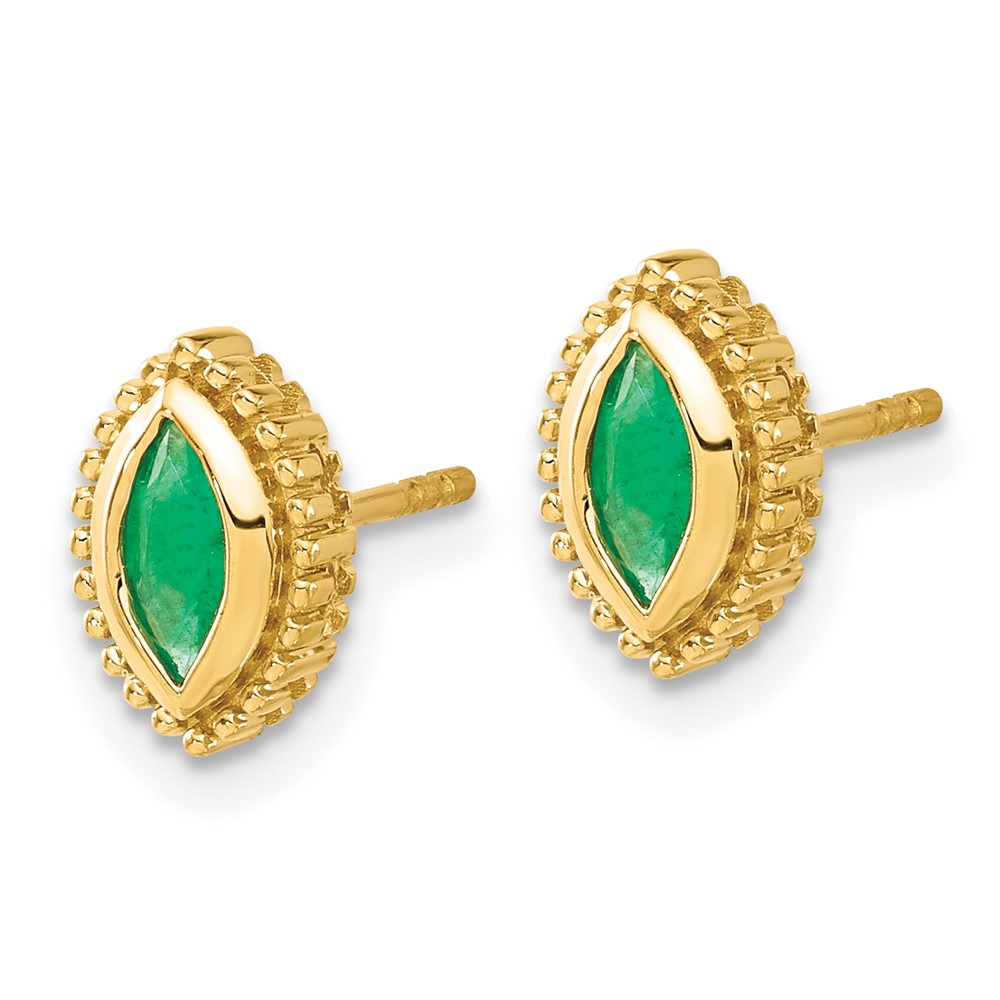 14k White Gold 6x3mm Marquise Emerald Post Earrings