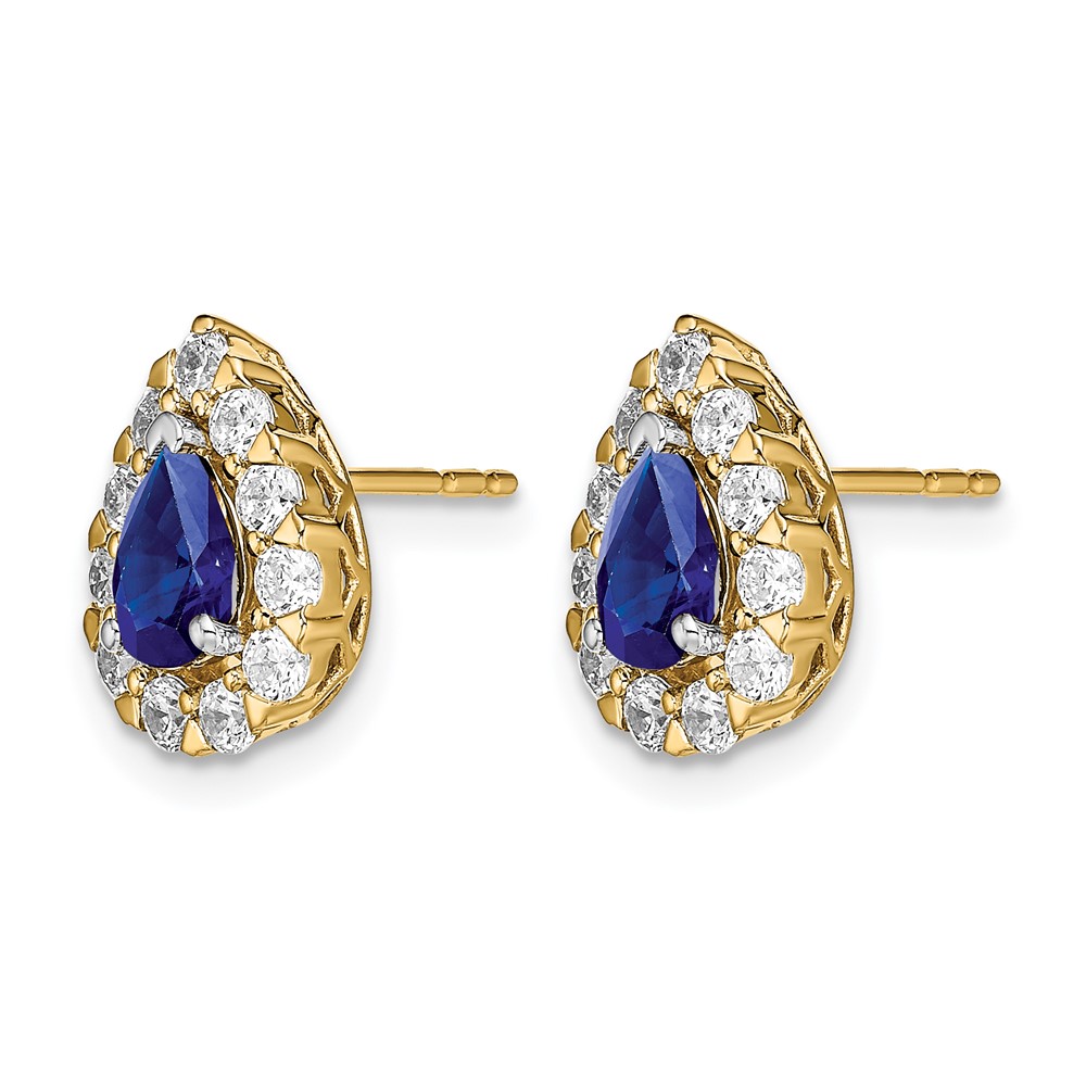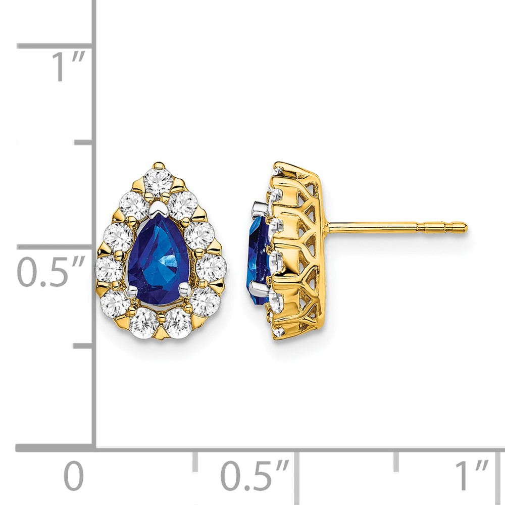 14k 6x4mm Pear Sapphire and 3/4 carat Diamond Halo Post Earrings