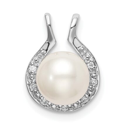 14K White Gold Polished 1/10 carat Diamond and White Freshwater Cultured Pearl Chain Slide