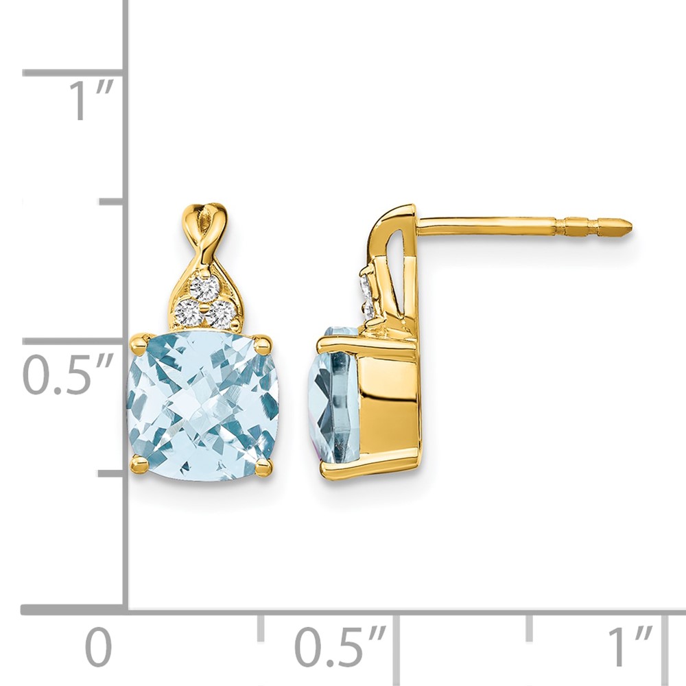 14k 7mm Cushion Checkerboard March/Aquamarine and Diamond Post Earrings