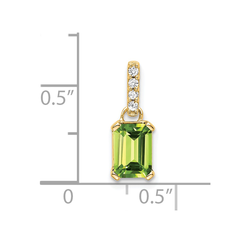 14k 7×5 Emerald-cut August/Peridot and Diamond Pendant