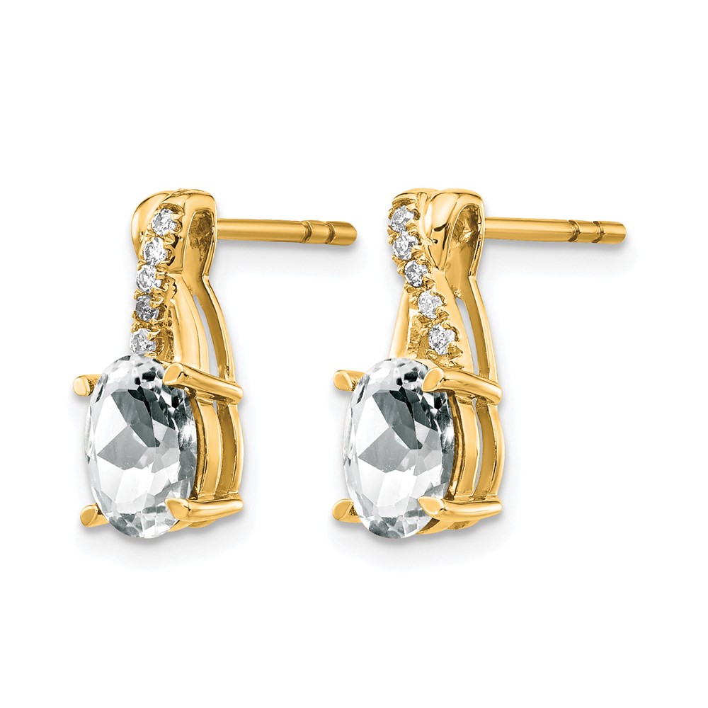 14K 5×3 Oval April/White Topaz and Diamond Dangle Post Earrings