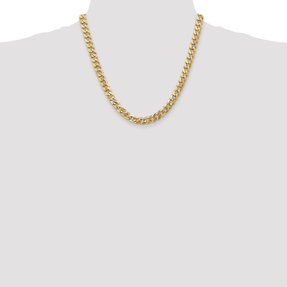 14K 7.25mm Flat Beveled Curb with Lobster Clasp Chain