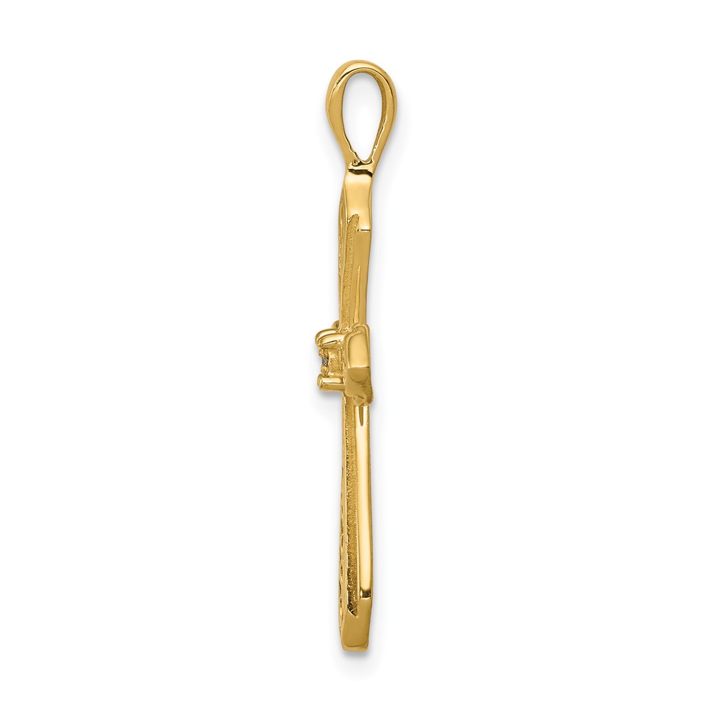 10K White Gold .01ct. Diamond Polished Budded Cross Pendant