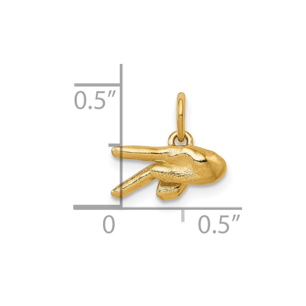 14K American Sign Language Alphabet Fingerspelling Sign P Pendant