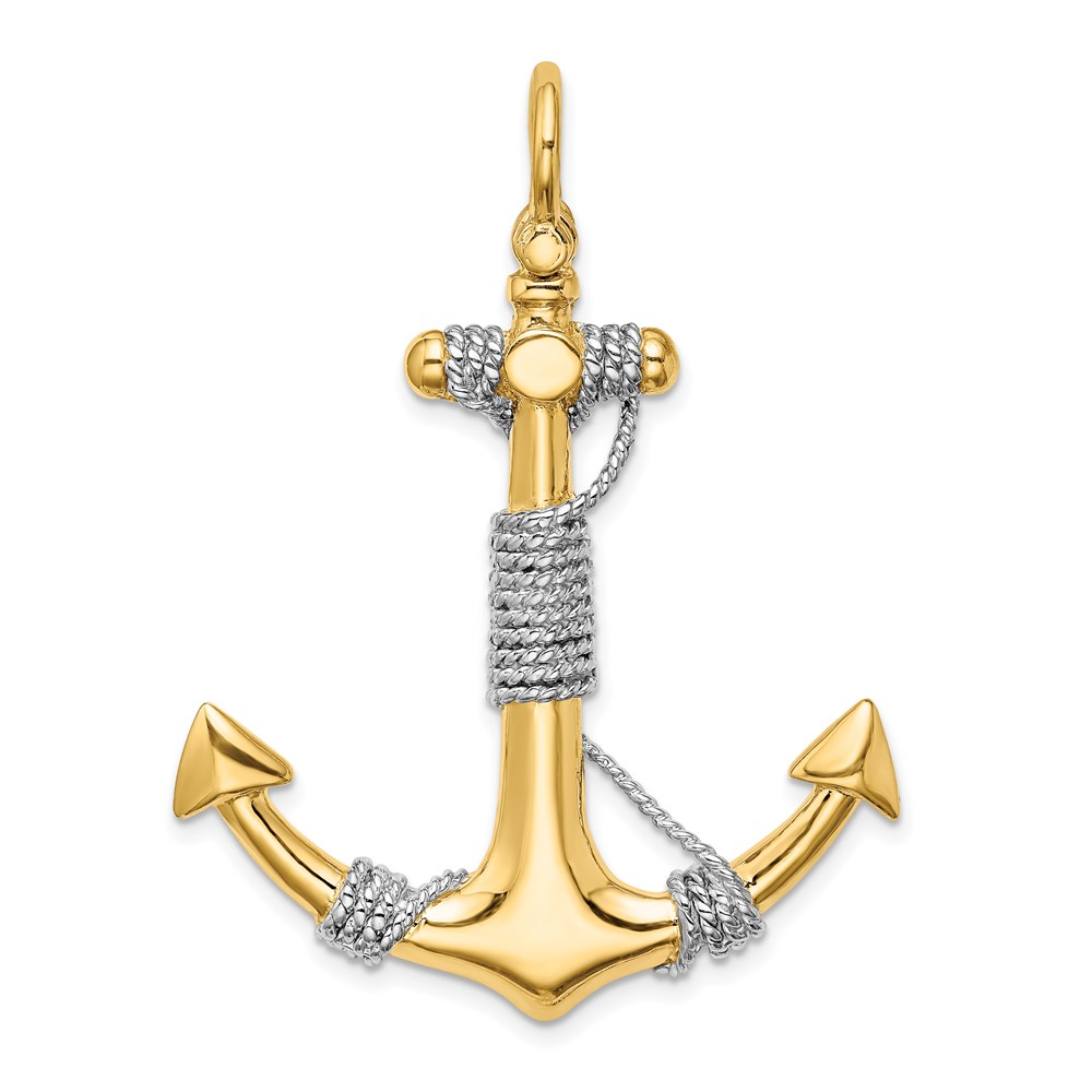 14K and White Rhodium 3-D Large Anchor with Wrapped Rope Charm