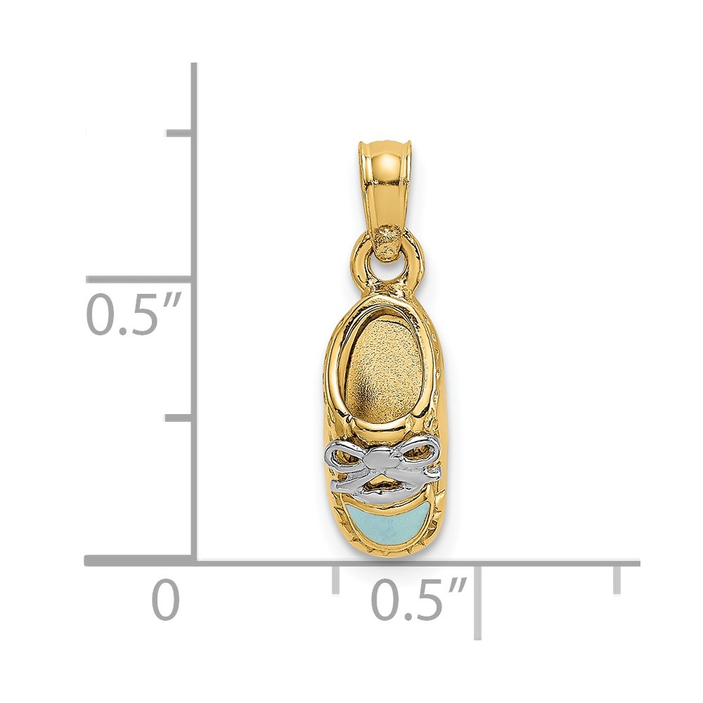 14K and White Rhodium 3-D Light Blue Enamel Baby Shoe Charm