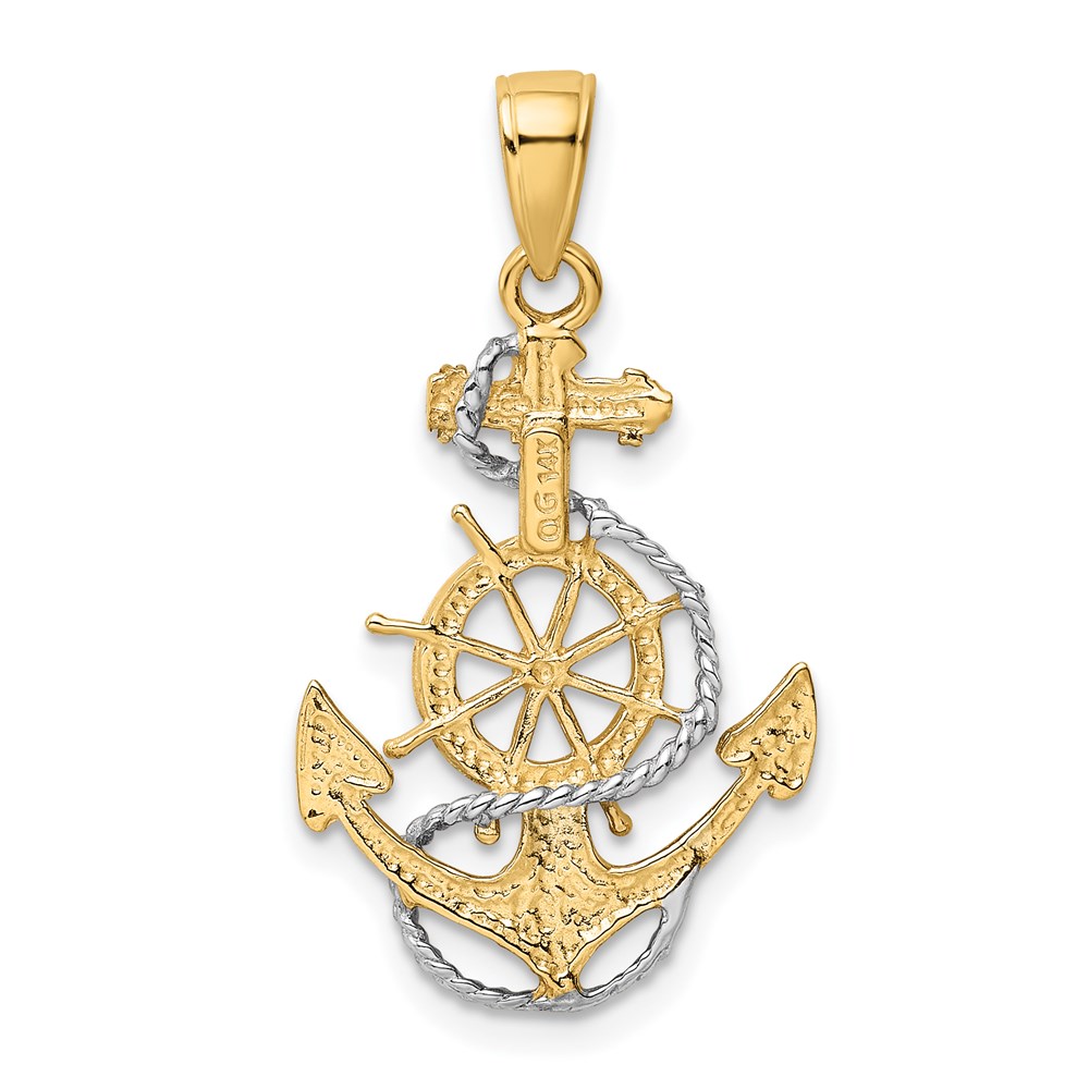 14K and White Rhodium Anchor with Rope and Ships Wheel Pendant