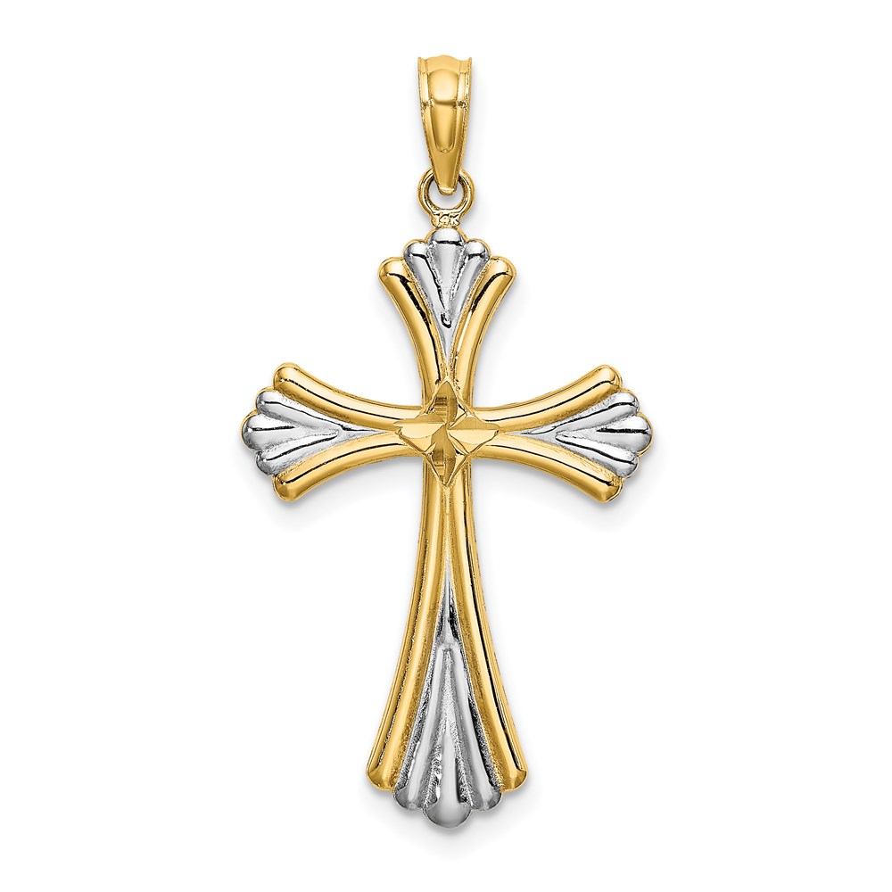 14K and White Rhodium and Diamond-cut Reversible Cross Charm