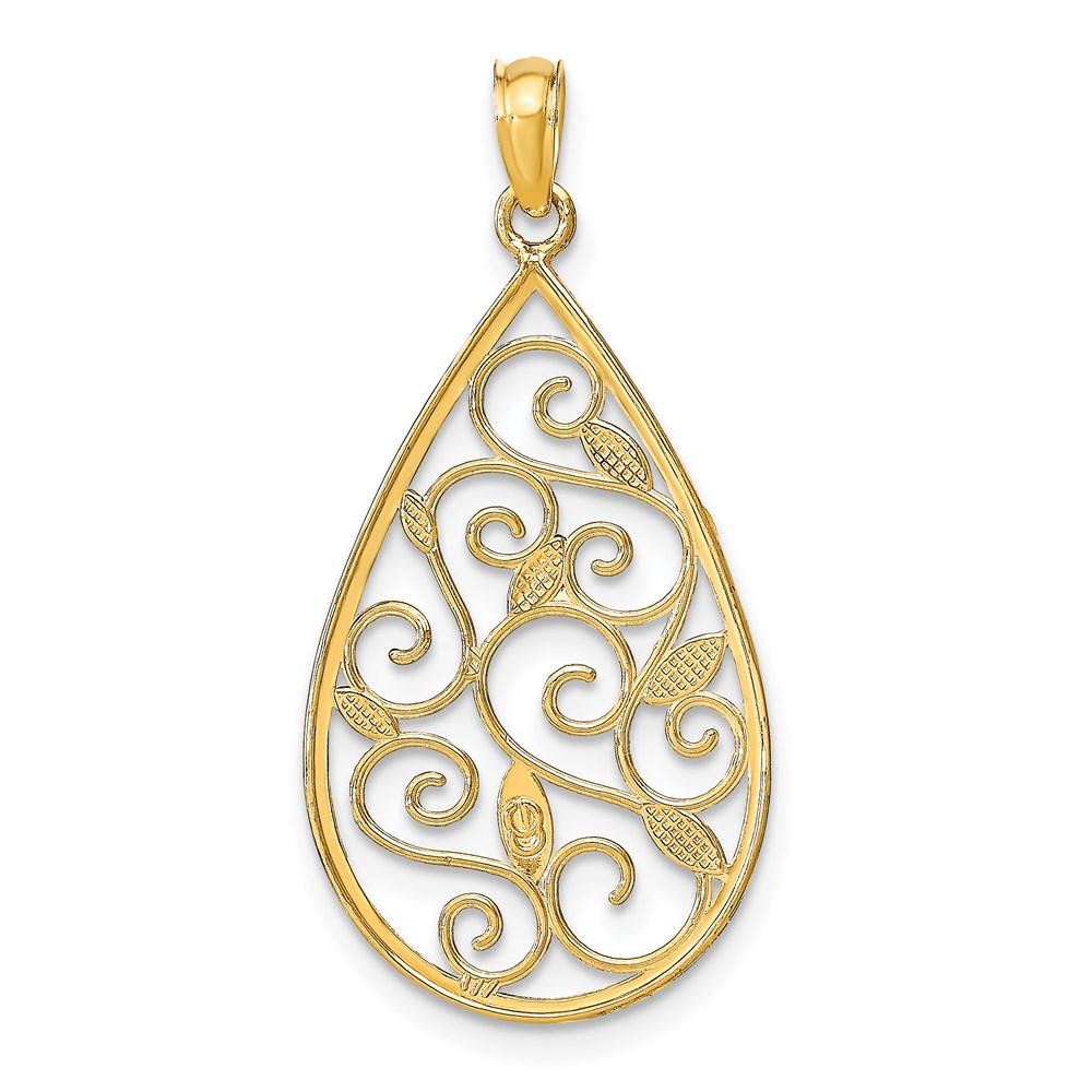 14k and White Rhodium Beaded Filigree Diamond-cut Teardrop Charm