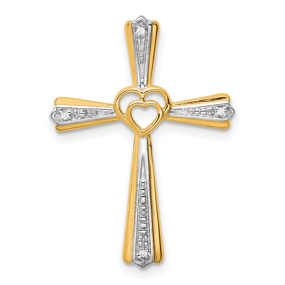 14k and White Rhodium Diamond Cross Pendant