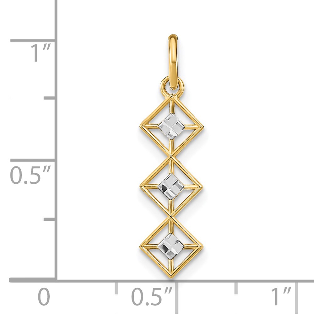 14k and White Rhodium Diamond-cut 3 Diamond-Shapes Charm