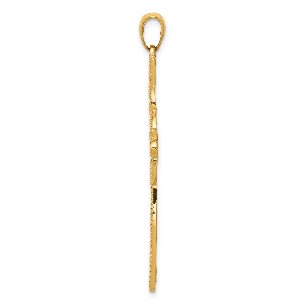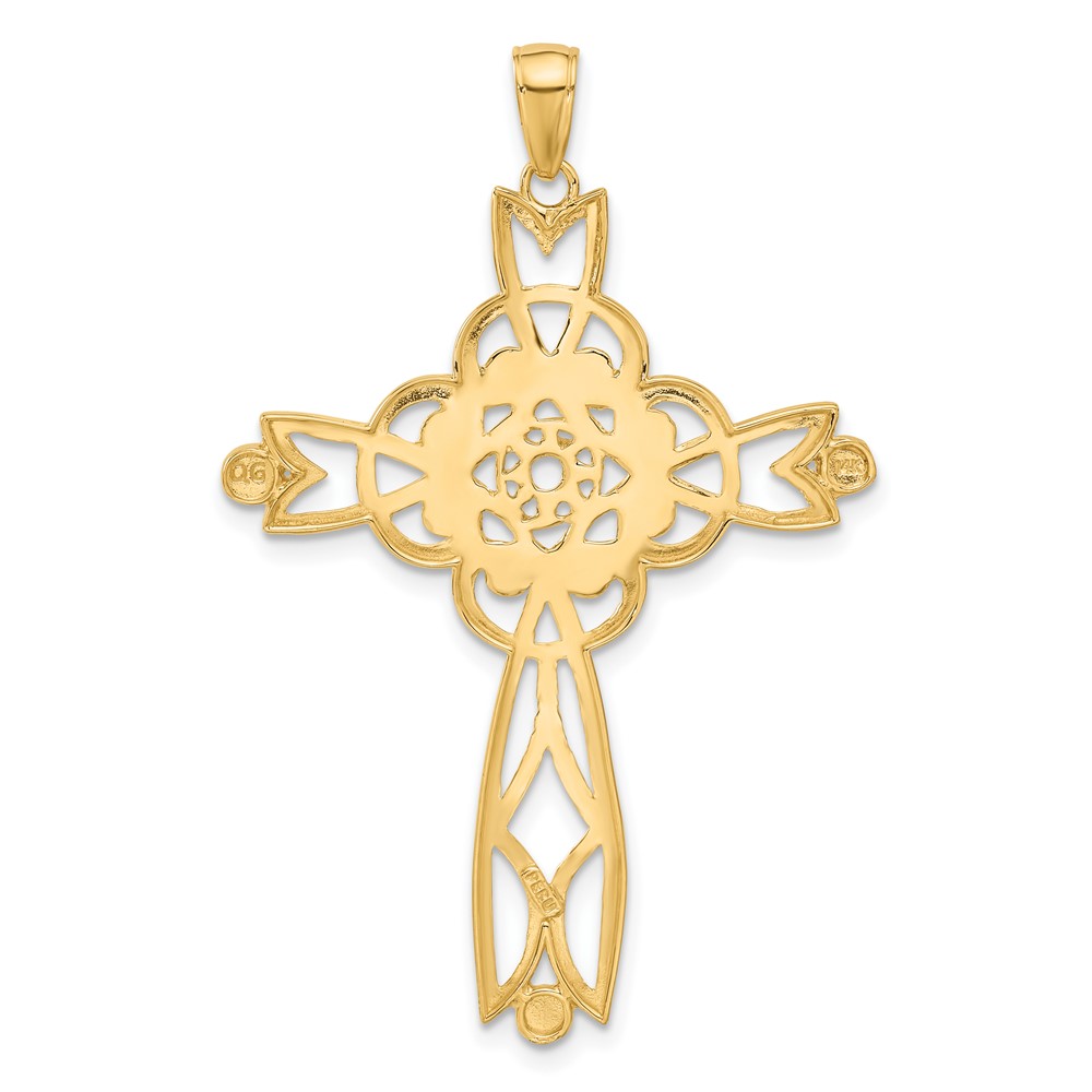 14K and White Rhodium Diamond-cut Beaded Trim Cross Pendant