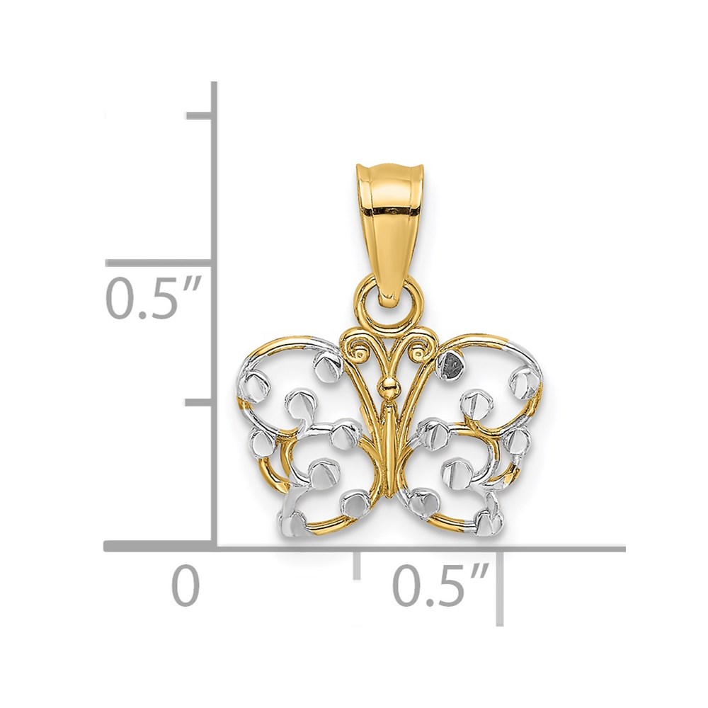 14k and White Rhodium Diamond-cut Butterfly Charm