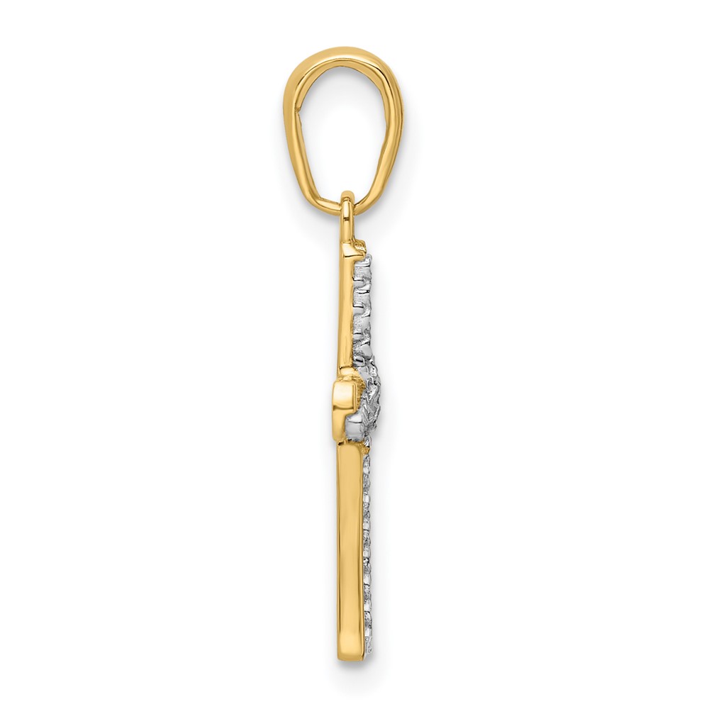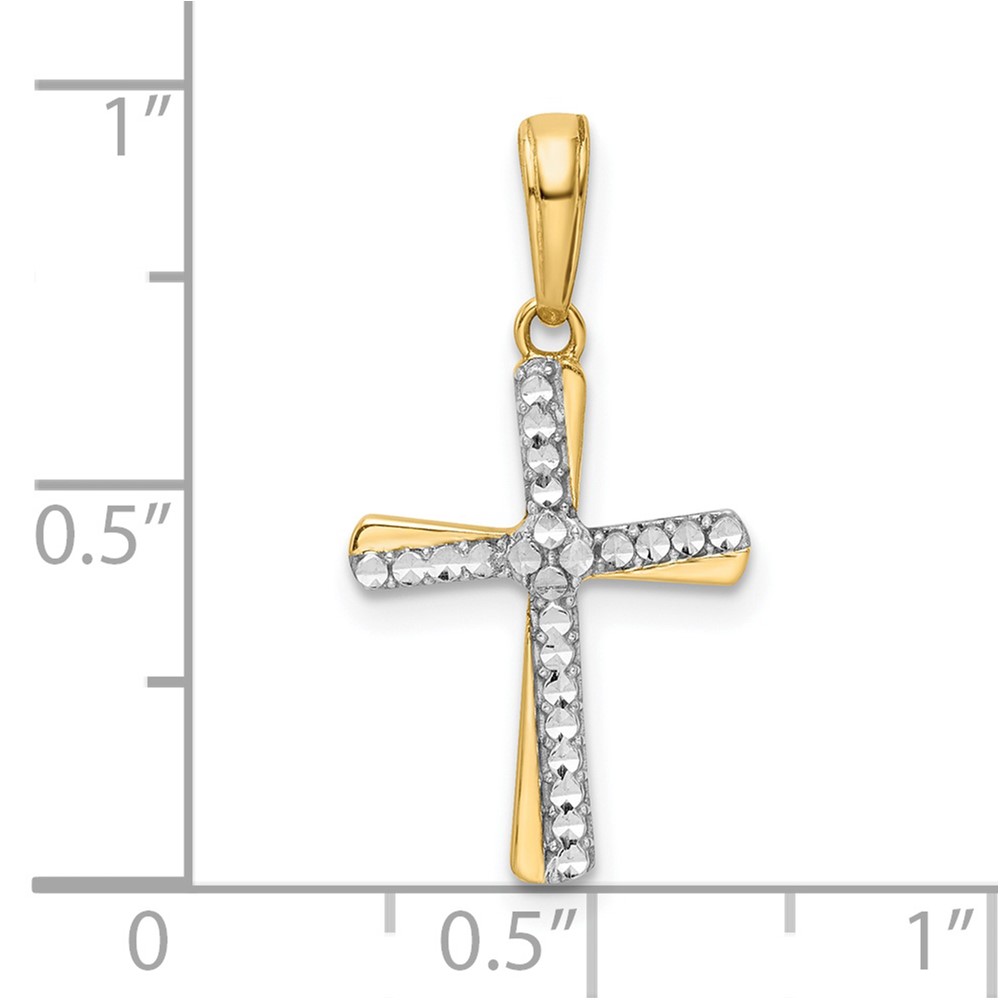 14K and White Rhodium Diamond-cut Cross Pendant