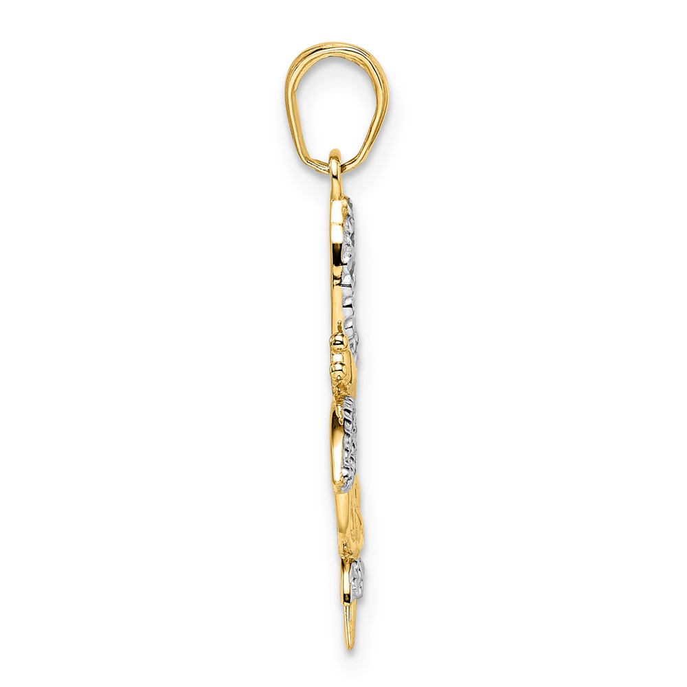 14k and White Rhodium Diamond-cut Filigree Dragonfly Pendant