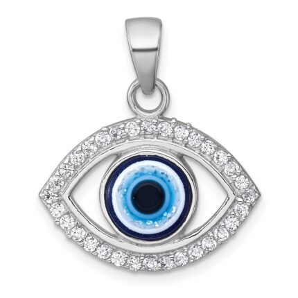 14K and White Rhodium Diamond-cut Evil Eye Pendant