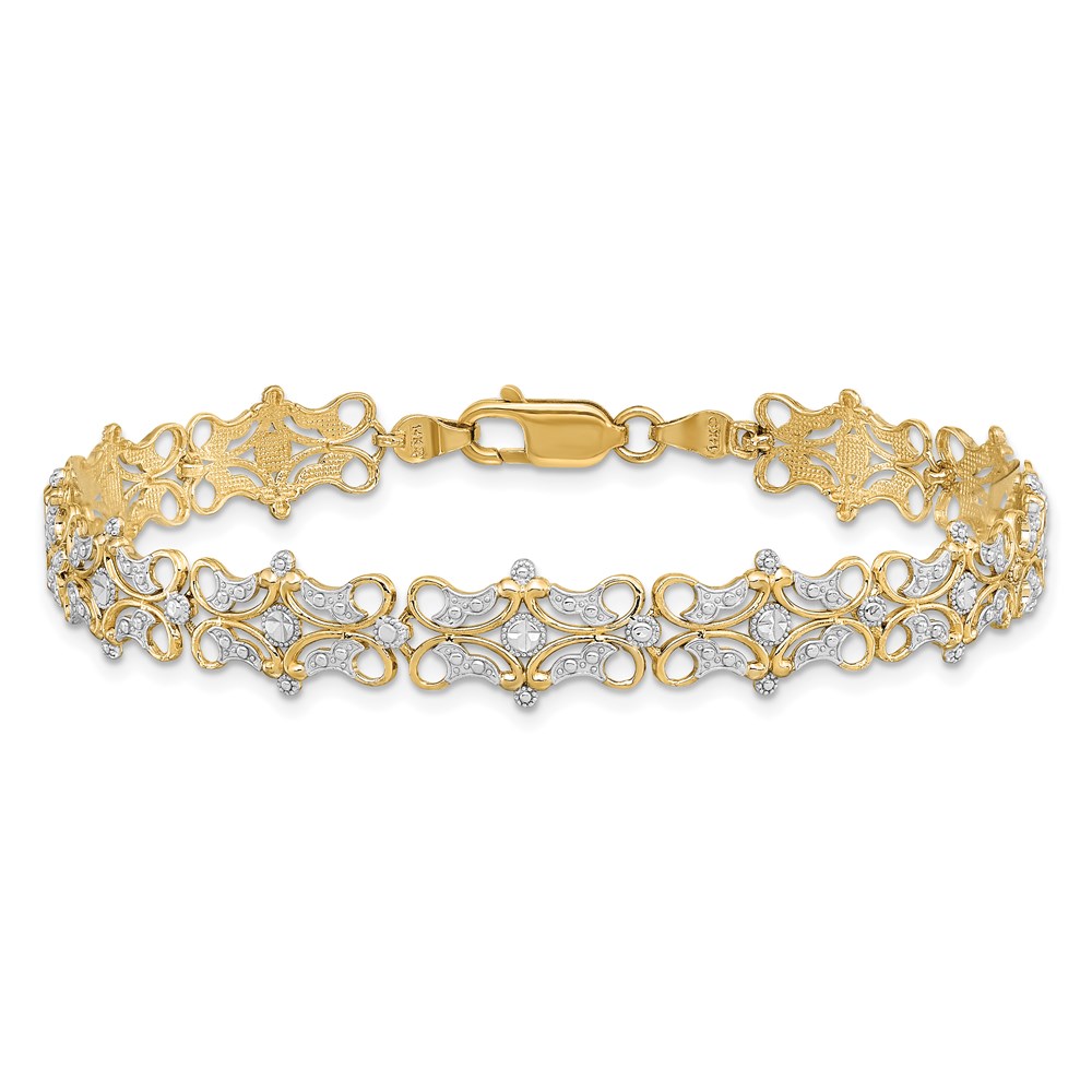 14k and White Rhodium Diamond-Cut Fancy Filigree 7.25 inch Bracelet