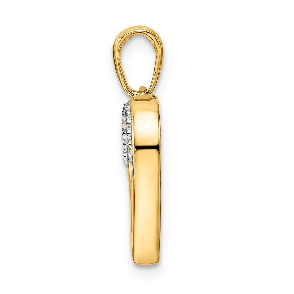 14k and White Rhodium Diamond-cut Heart Dangle in Heart Pendant