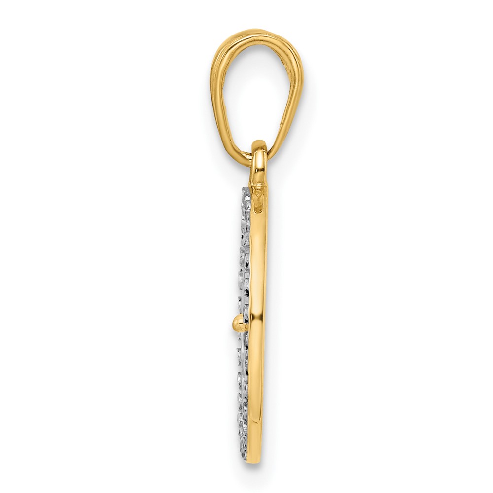 14K and White Rhodium Diamond-cut Four-leaf Clover Pendant
