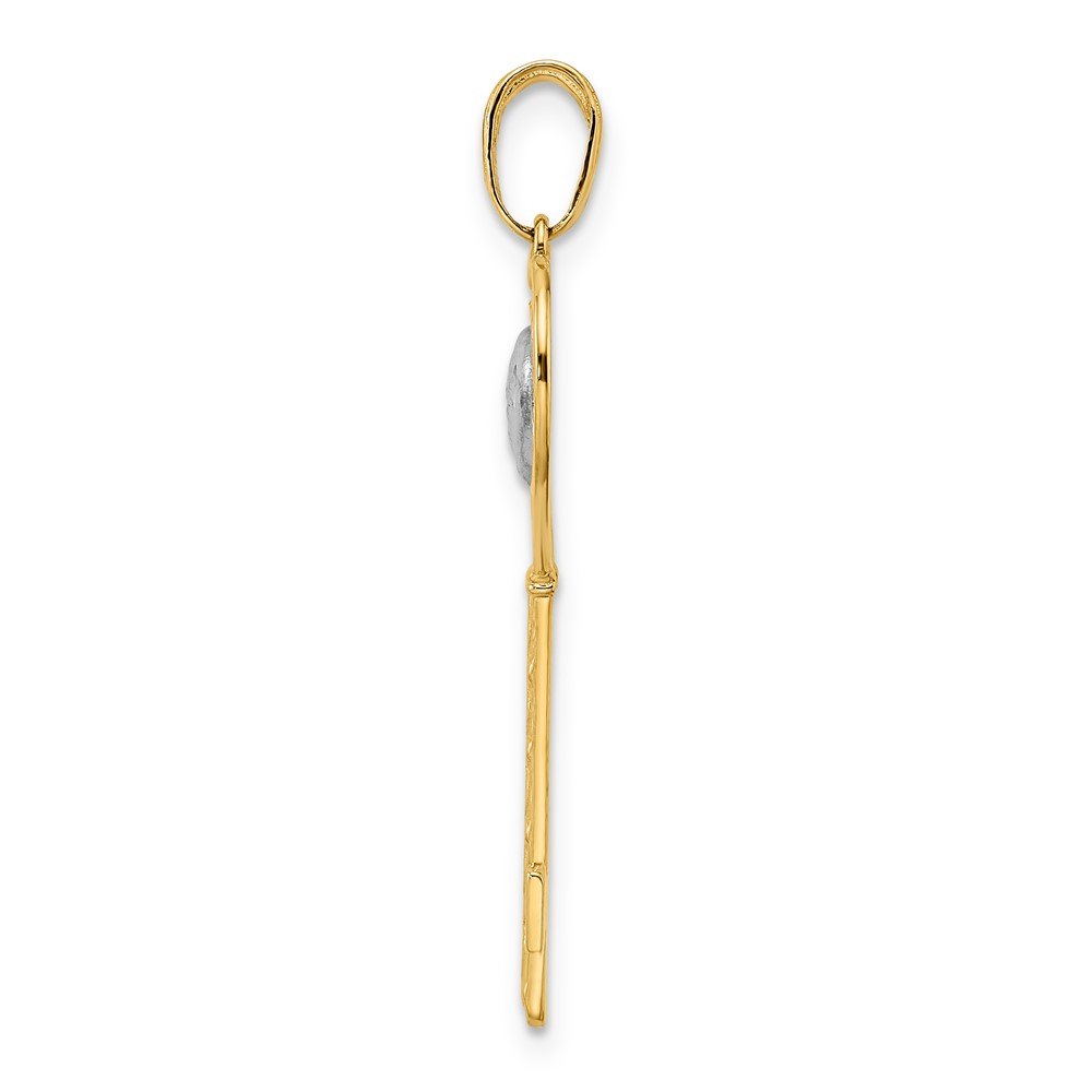 14k and White Rhodium Diamond-cut Heart/Angel Wings Key Pendant