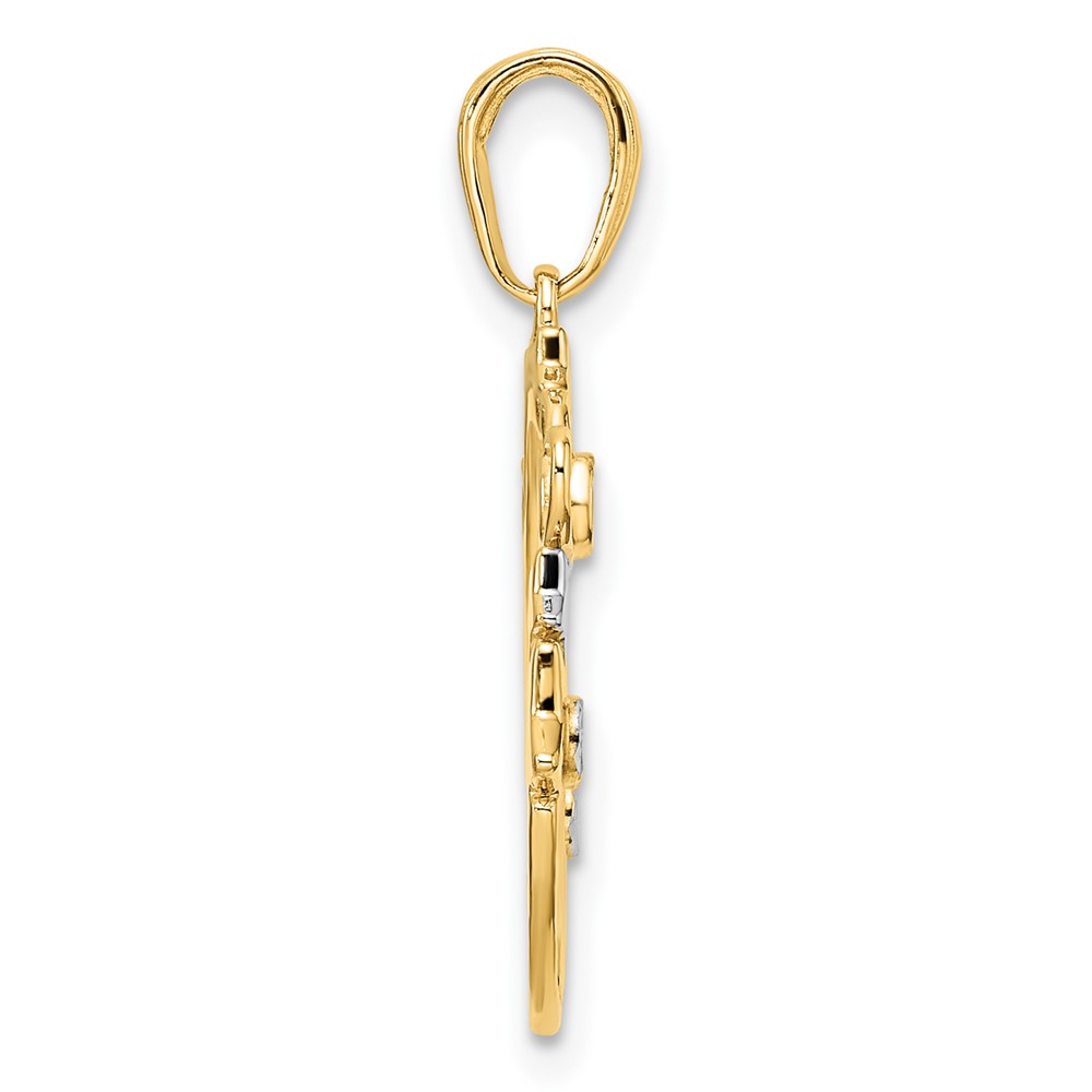 14k and White Rhodium Diamond-cut Heart/Star/Moon Pendant