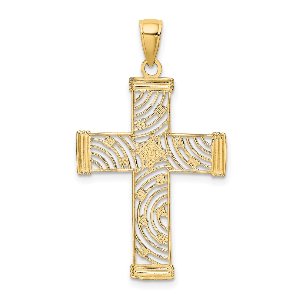 14K and White Rhodium Diamond-cut and Cut-Out Cross Charm