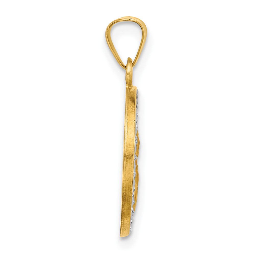 14K and White Rhodium Hollow Sacred Heart of Jesus Medal Round Pendant