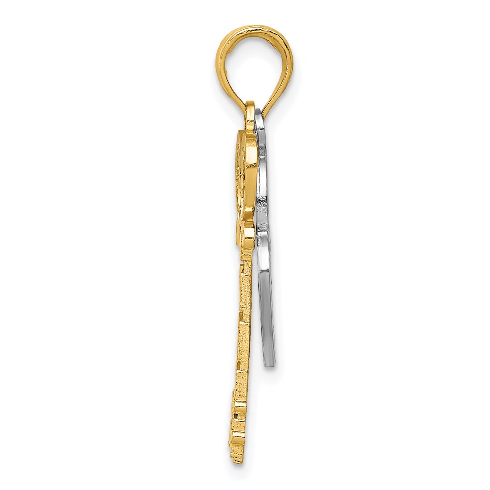 14K and White Rhodium Moveable Filigree Heart Key and Lock Charm
