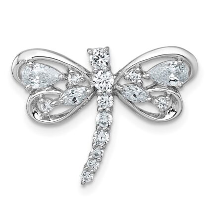 14k and White Rhodium Polished Diamond-cut Filigree Dragonfly Pendant