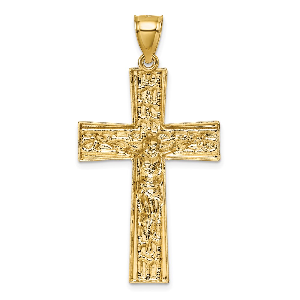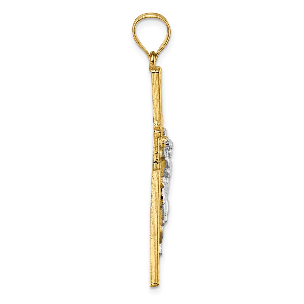 14k and White Rhodium Polished Diamond-cut Nugget Crucifix Pendant