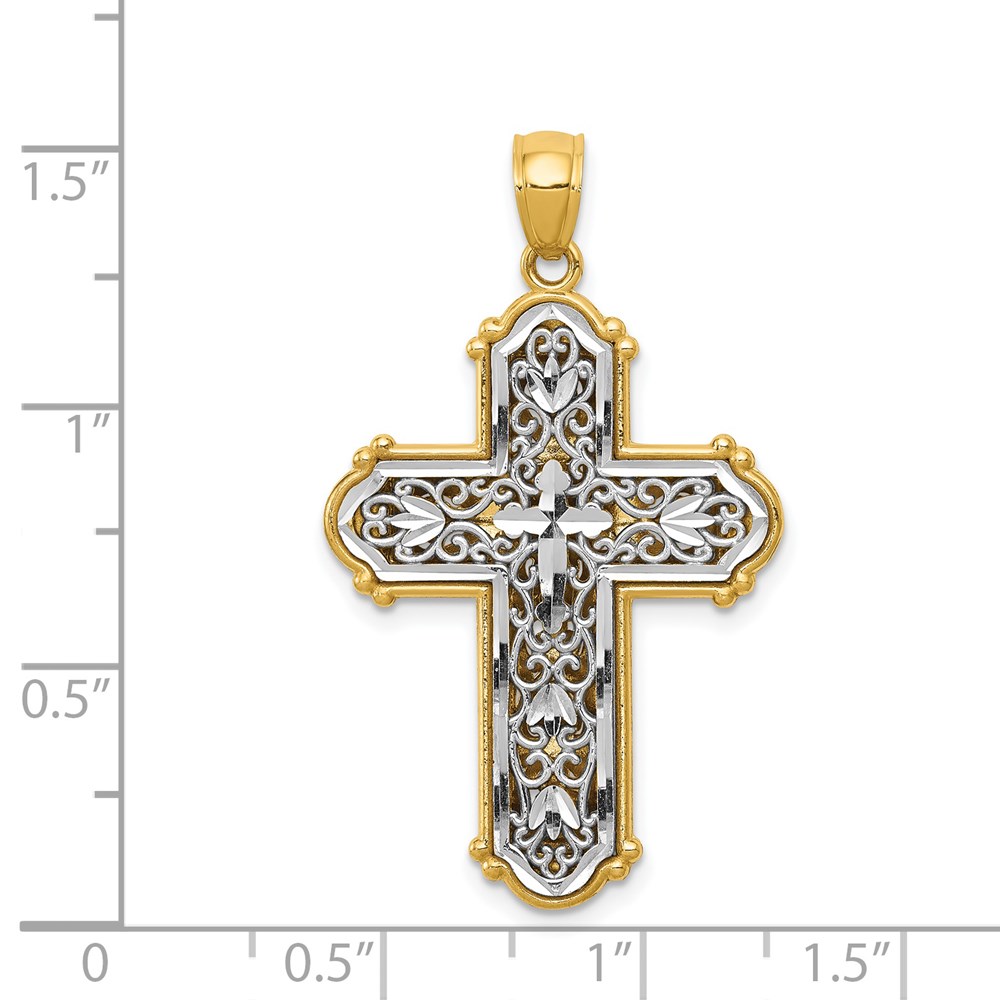 14k with White Rhodium Diamond-cut Filigree Cross Pendant