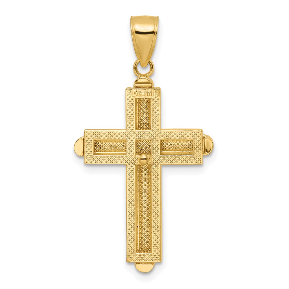 14K White Gold 2-D Filigree Center Block Cross Charm