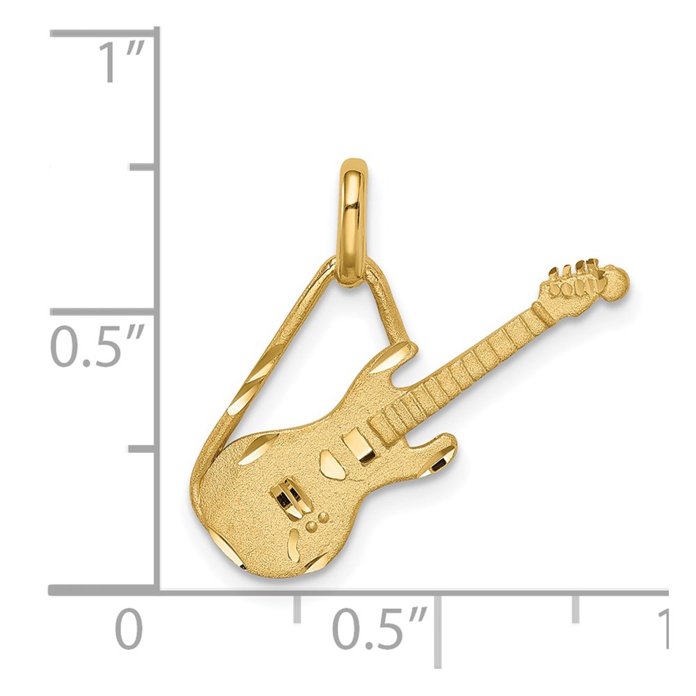 14K Brushed and Diamond-cut Electric Guitar Pendant