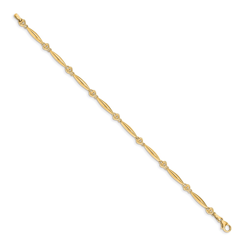 14k Complete 1.08 carat Diamond Heart Link 7 inch Bracelet